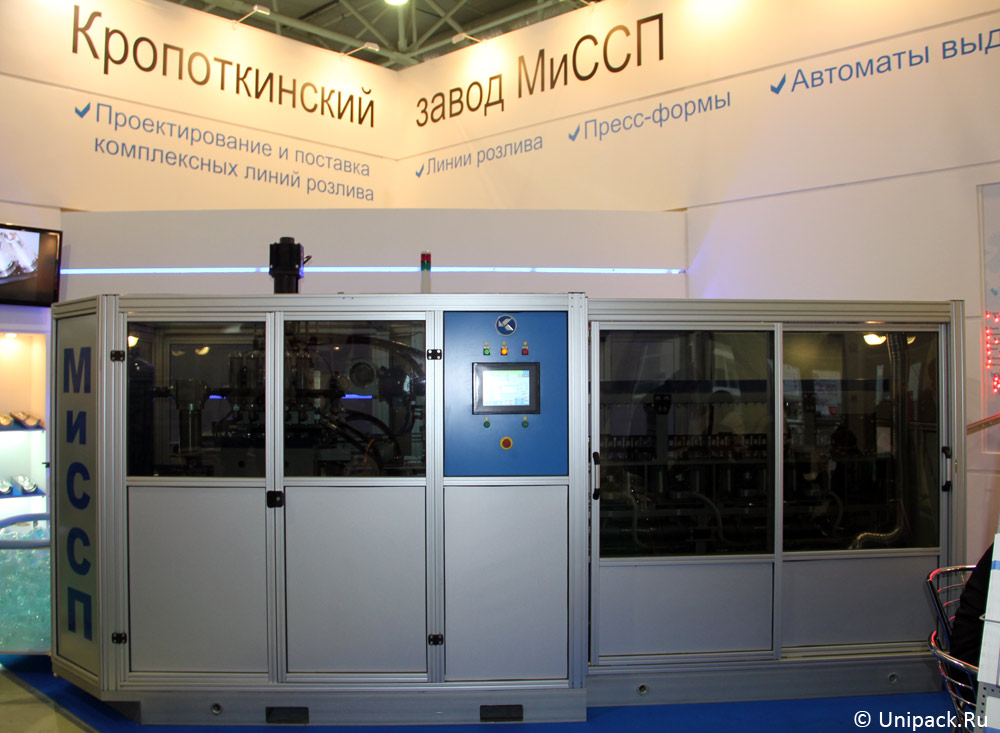 Гости стенда ЗАО «Кропоткинский завод МиССП» могут увидеть автомат по выдуву ПЭТ-тары А-4000-6. Это оборудование предназначен для производства ПЭТ-бутылок из разогретых преформ методом вытяжки и двухстадийного выдува в четырехгнездной пресс-форме. Автомат позволяет изготавливать бутылки емкостью от 0,25 до 2 л, предназначенные для розлива как газированных, так и негазированных напитков. Автомат оснащается пневмооборудованием ведущих фирм Festo, AirCom, Camozzi, контроллером и электроникой Omron.