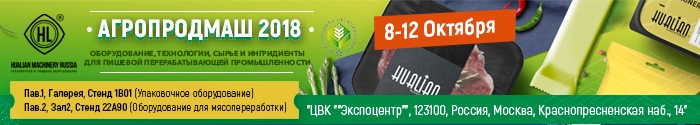 С 8 по 12 октября 2018 года в Москве в ЦВК «Экспоцентр» пройдет 23-я Международная выставка «АГРОПРОДМАШ 2018» (Оборудование, машины и ингредиенты для пищевой и перерабатывающей промышленности). Компания «Hualian Machinery Russia» ежегодно участвует в данном мероприятии, и в этом году также представит свое высококачественное упаковочное и мясоперерабатывающее оборудование.